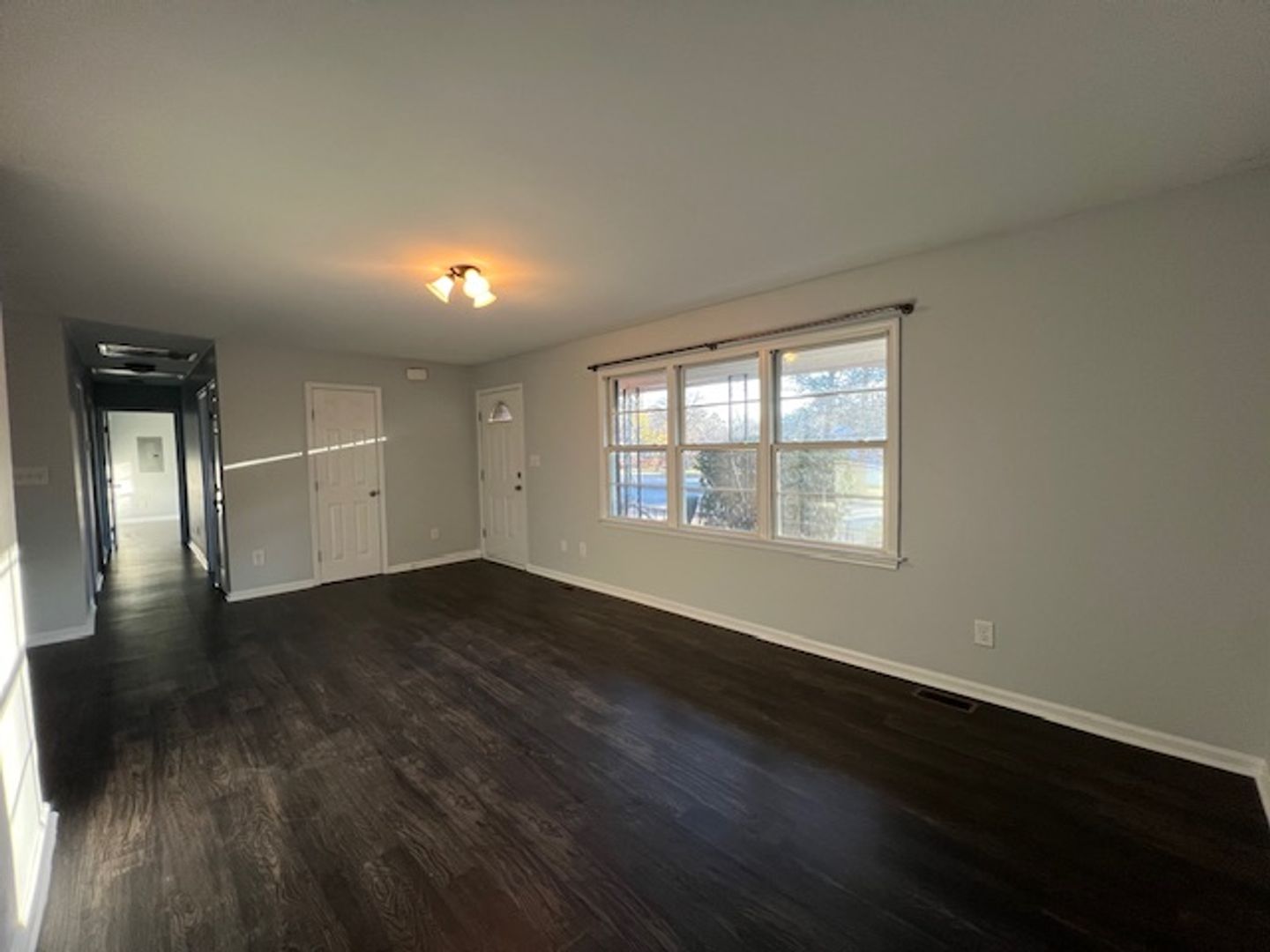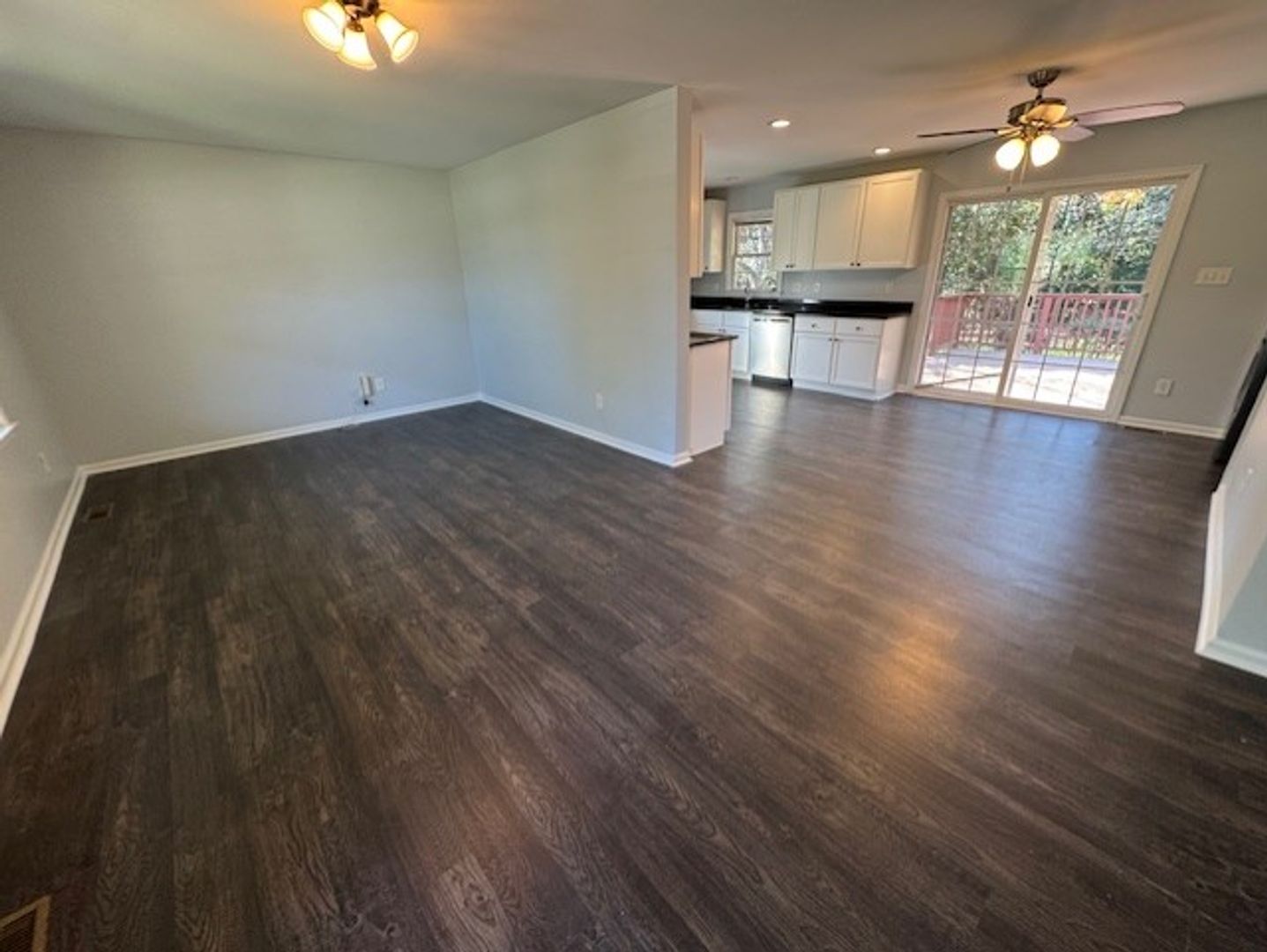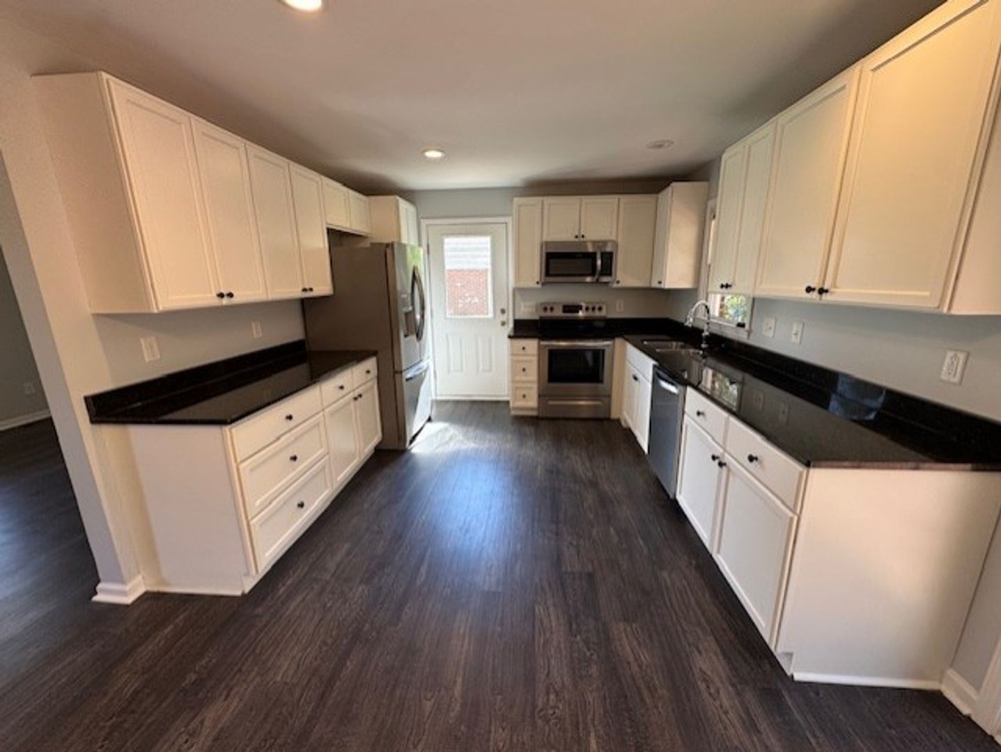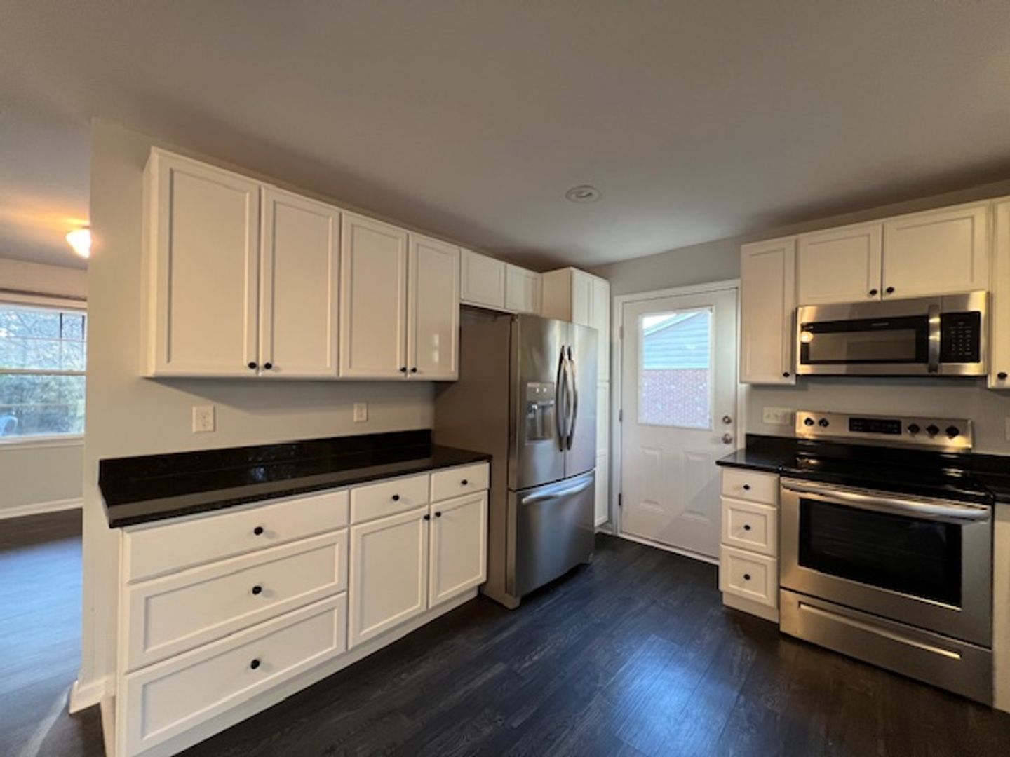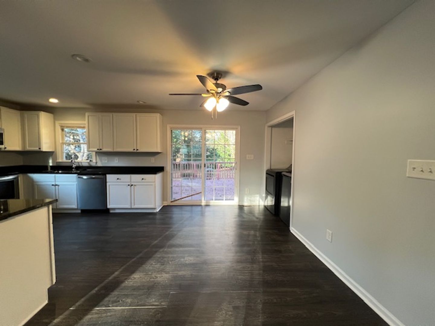 A rare ranch-style 3-bedroom, 2-bathroom home in an established community, conveniently located close to everything! You will love this single story layout. Great natural light into the living room with LVP flooring throughout. Huge kitchen with granite countertops, stainless steel appliances and all the counter space you need. Dining area with access to amazing two level patio. Enjoy the oversized patio and private fenced backyard, with shed and additional storage. Main bedroom with full bathroom, and two additional bedrooms with full hall bath. Washer and dryer are included. Homes like this aren't on the market long! Apply now!